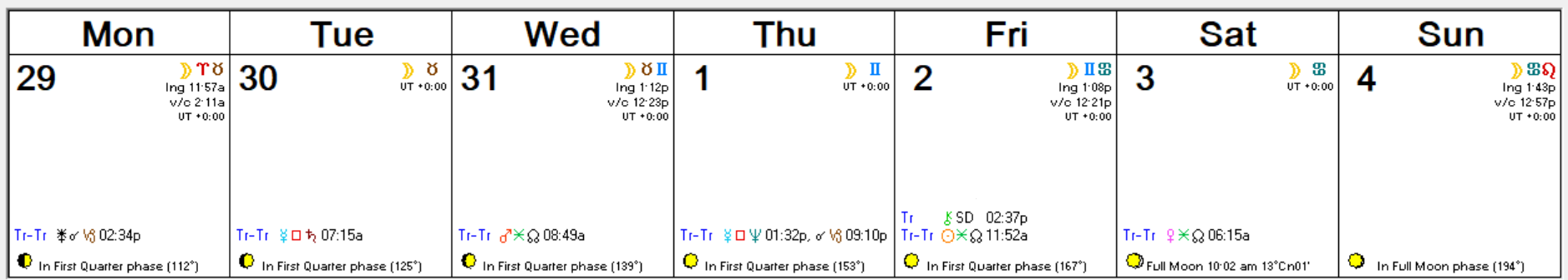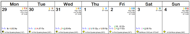 Here’s this week’s Astro Calendar. Click on it to view it full-sized.