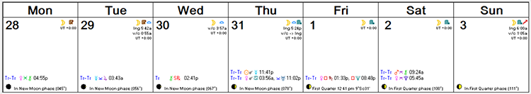 Here’s this week’s Astro Calendar. Click on it to view it full-sized.