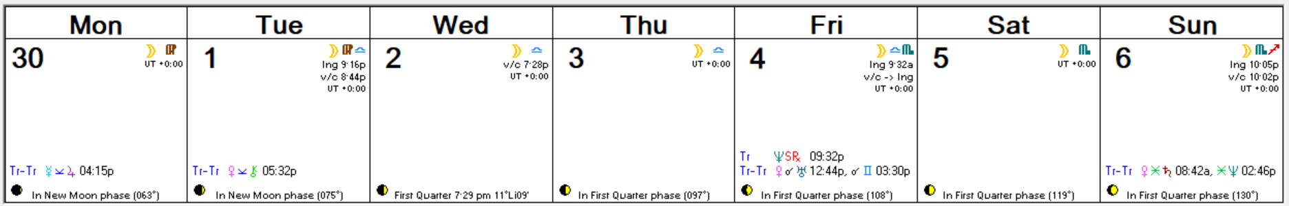 Here’s this week’s Astro Calendar. Click on it to view it full-sized.